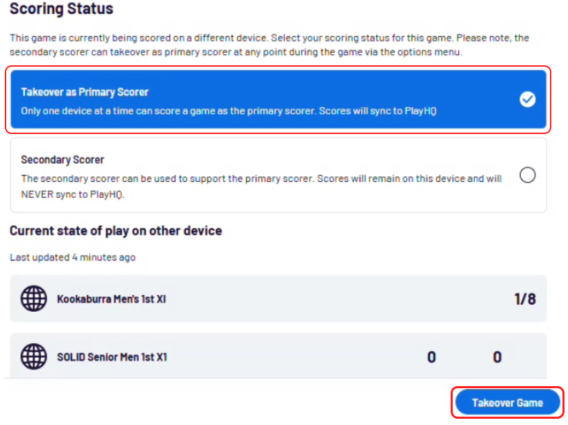 Select “Take over as Primary Scorer”, then click “Take over game.”