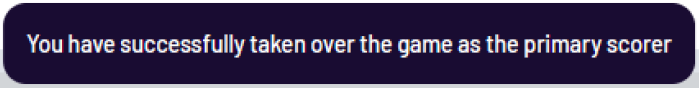 A confirmation message will appear stating that you have successfully taken over as the primary scorer.